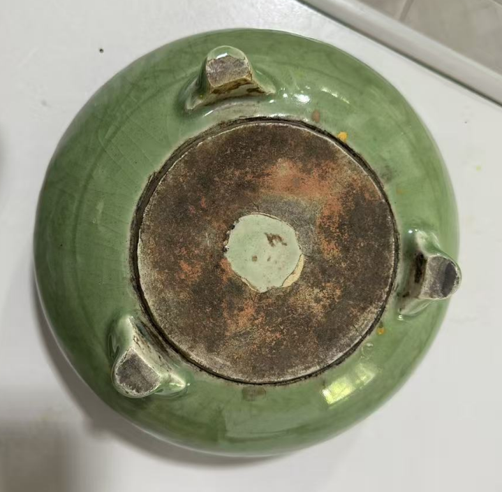 龙泉窑青釉三足大香炉