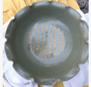 青瓷描金诗文花口洗值得收藏,核心在于它集工艺价值、文化内涵与稀缺属性于一身:青瓷的温润釉色与描金的华贵质感形成精妙对比,花口造型更显匠心,而器物上的诗文则为其注入文人意趣,是工艺与文化的完美融合,加之存世量有限,兼具观赏与稀缺双重收藏优势。