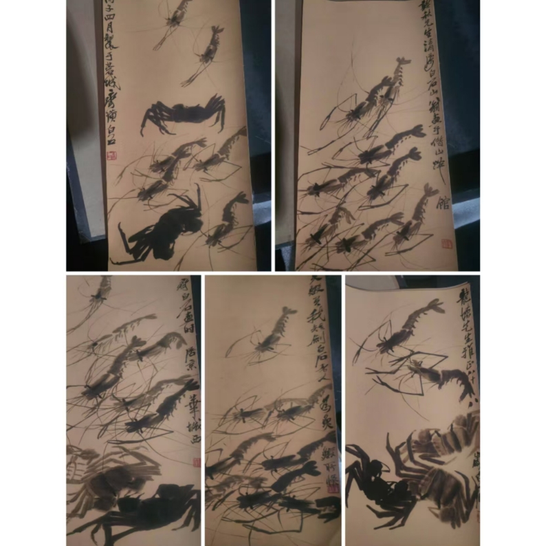 齐白石.十条小屏虾蟹图