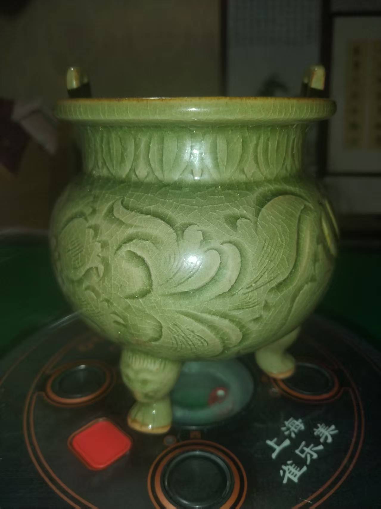 清代青釉三足炉