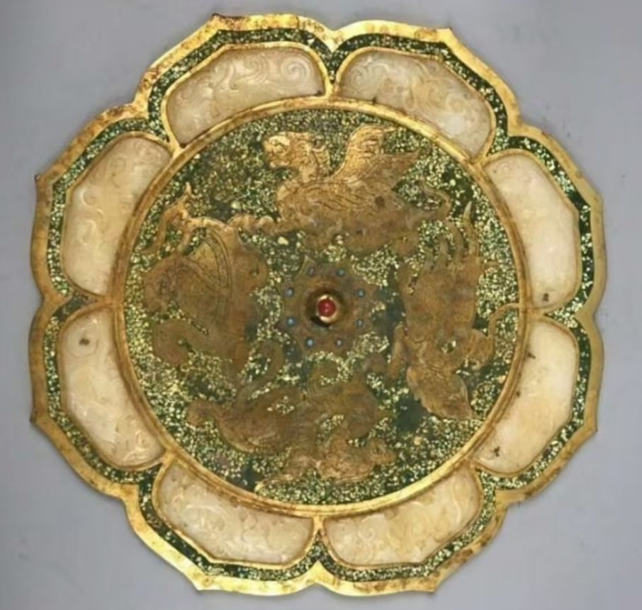 唐代嵌宝石鎏金葵花铜镜