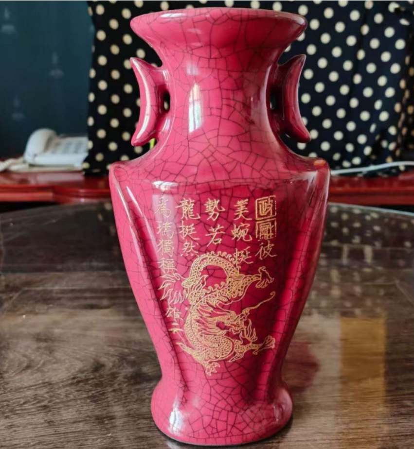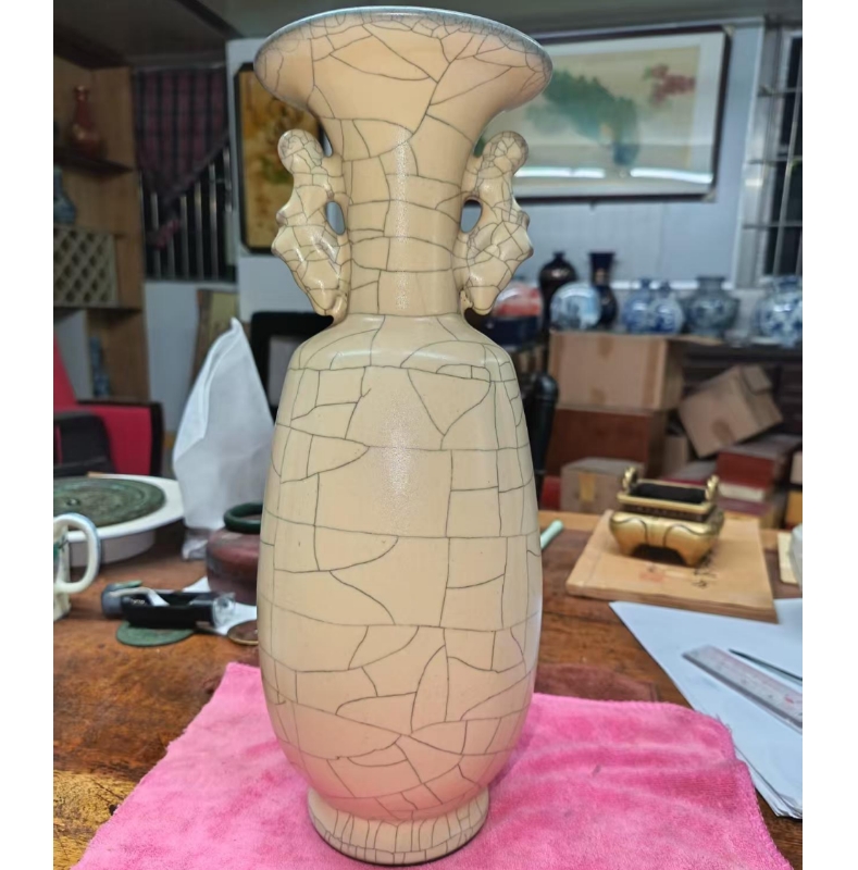 哥窑开片双龙耳瓶