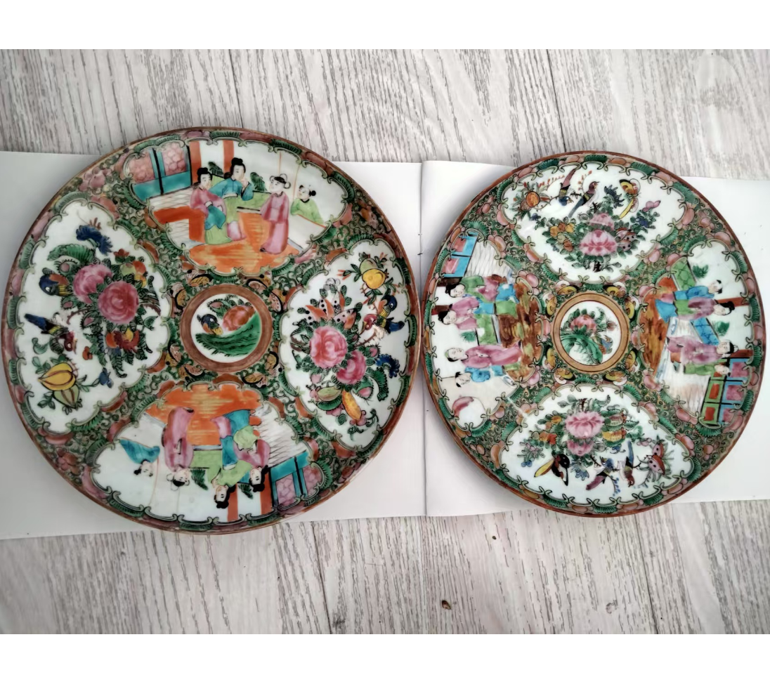 广彩人物花鸟纹盘