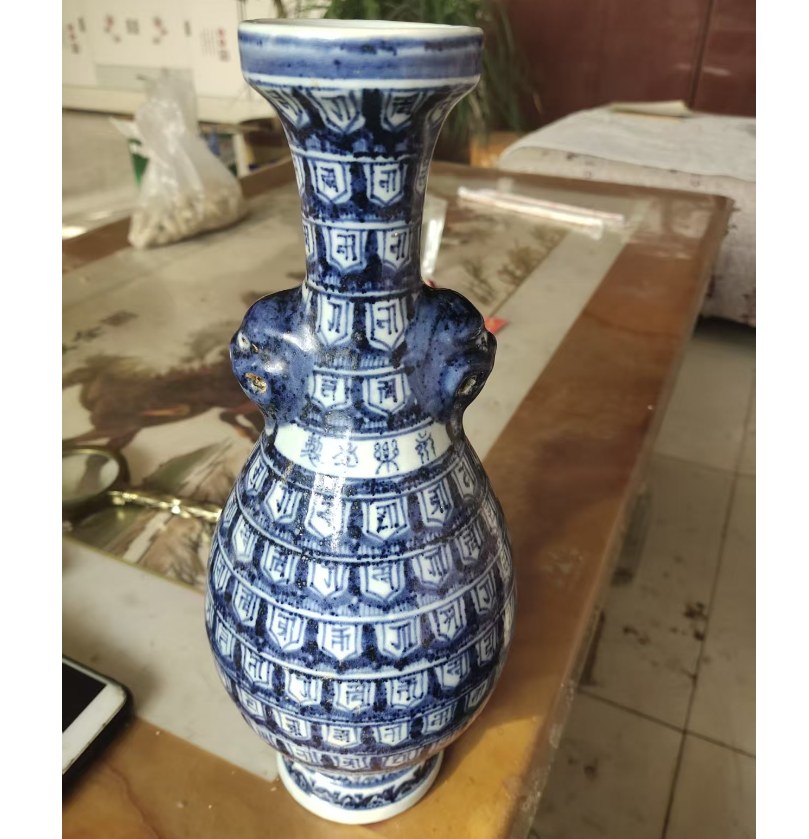 永乐年制青花梵文双耳瓶
